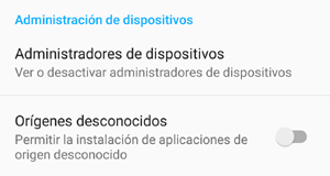 - Busca la opción “Orígenes desconocidos” o “fuentes desconocidas" y asegúrate que se encuentre desactivada.